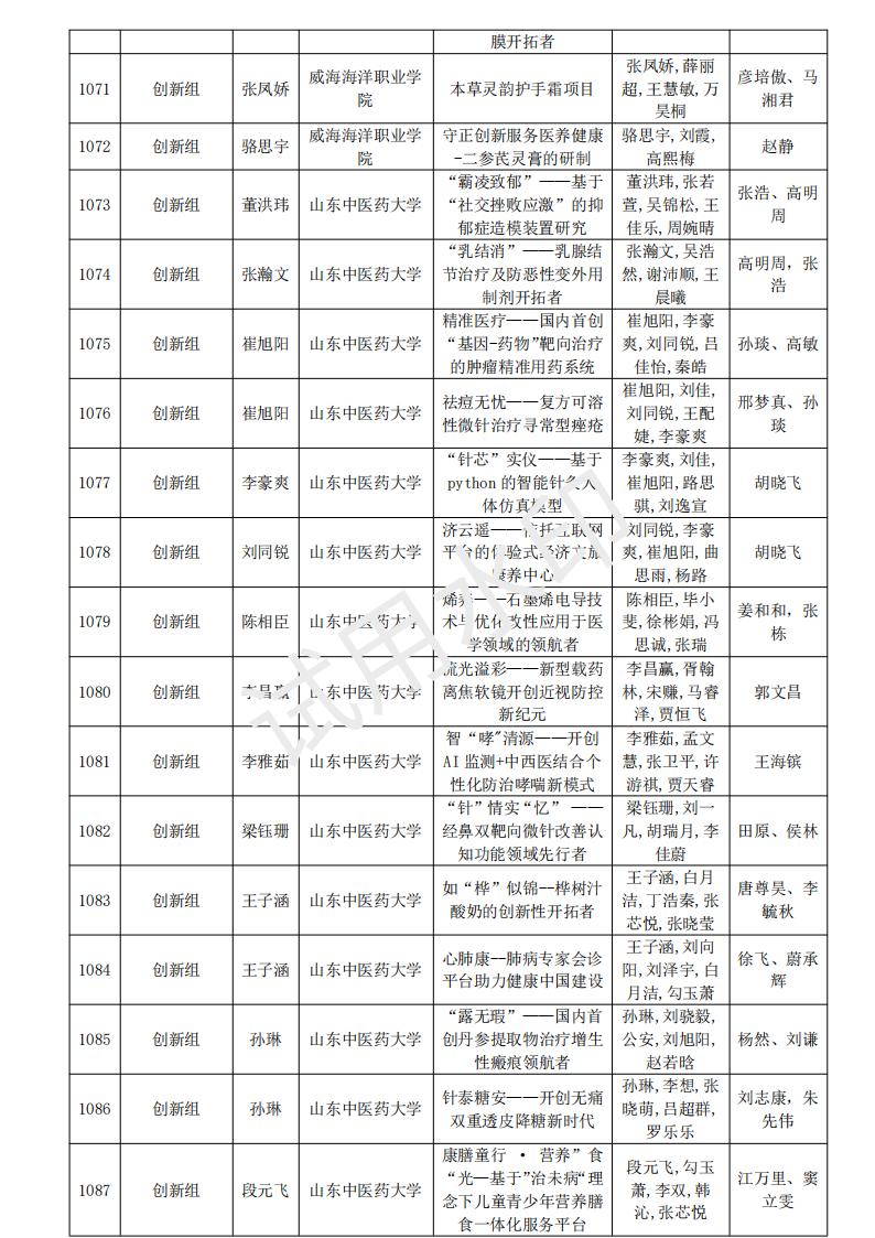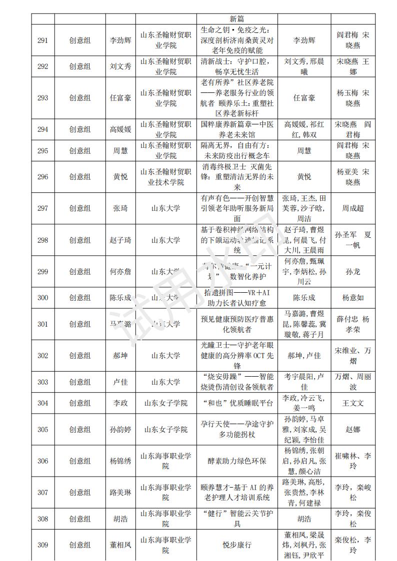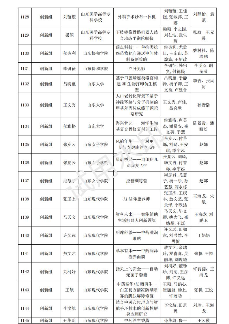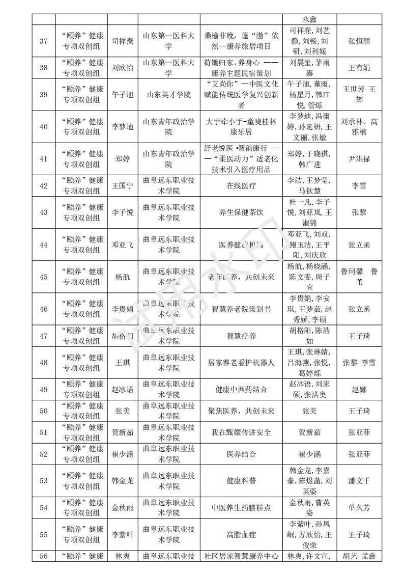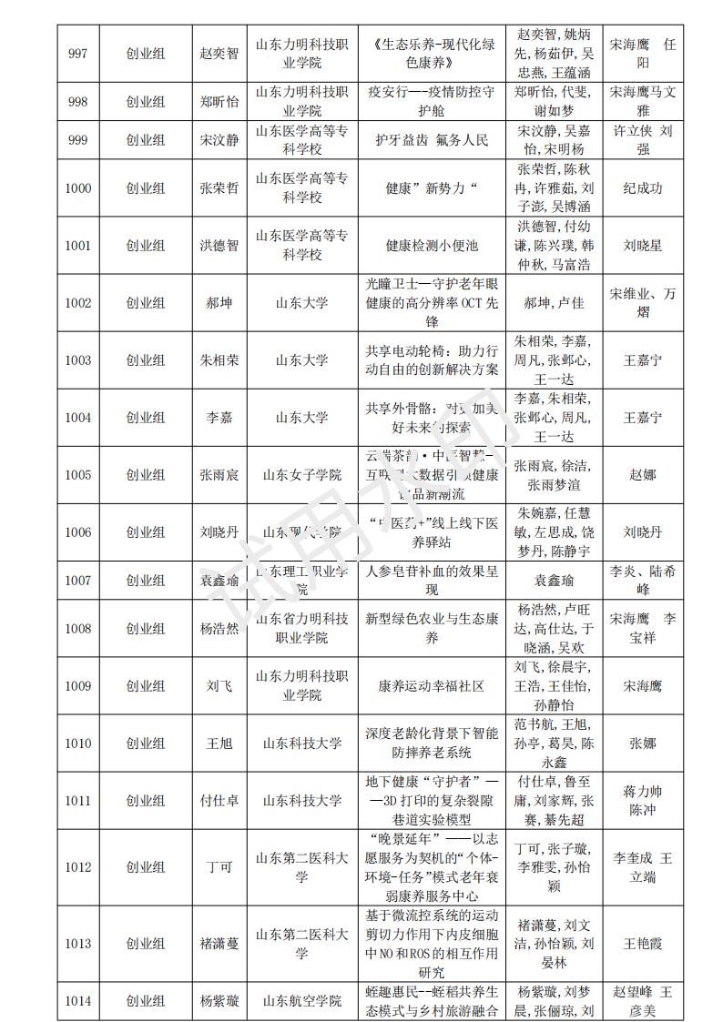 山东省大学生医养健康创新创业大赛2024年度初赛名单公示