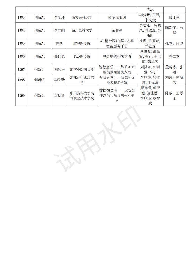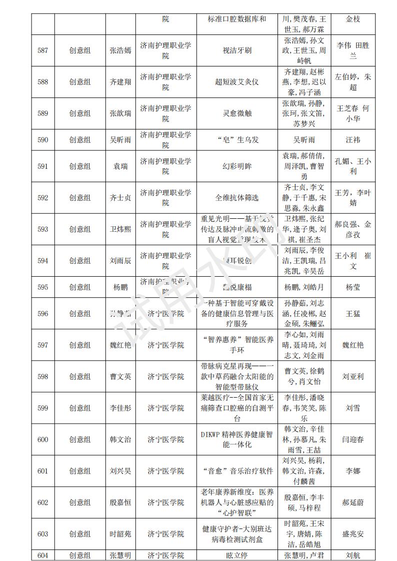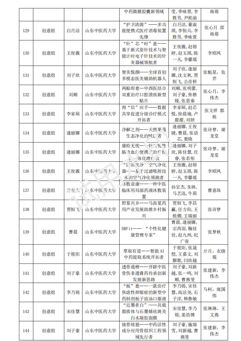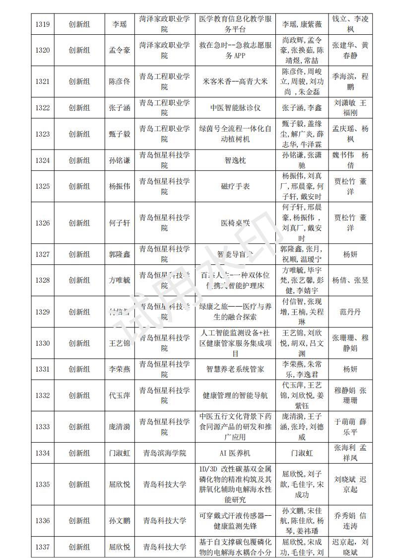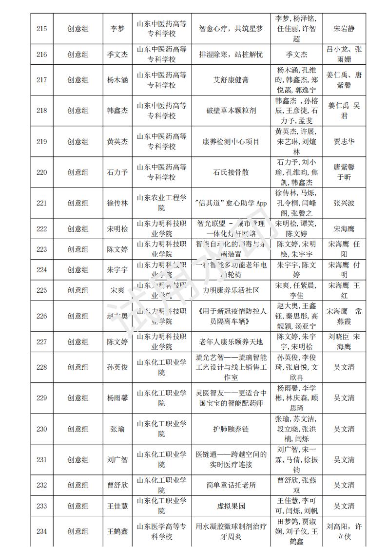 山东省大学生医养健康创新创业大赛2024年度初赛名单公示