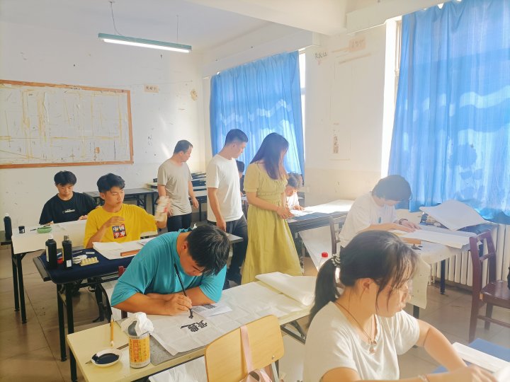 8月30日13:30,艺术系2024级书画艺术专业新生入学技能测试在西教学楼艺术系教室举行,书画艺术专业的100余名新生参加了此次考试,书画艺术教研室的十余名老师担任考试的监考教师,考试井然有序、学生纪律严明。考试期间学工处副处长李鑫、艺术系教学副主任吴书根、教务科长孔敏等领导老师进行了巡场指导。 根据2024年书画艺术专业人才培养方案设定,艺术系书画艺术专业现开设艺术班和教育班。此次考试的目的一方面对新入学的学生进行技法水平的整体评估,另一方面更好地对学生进行规划培养,提高教育教学质量,为新生未来三年专业学习进行科学规划。