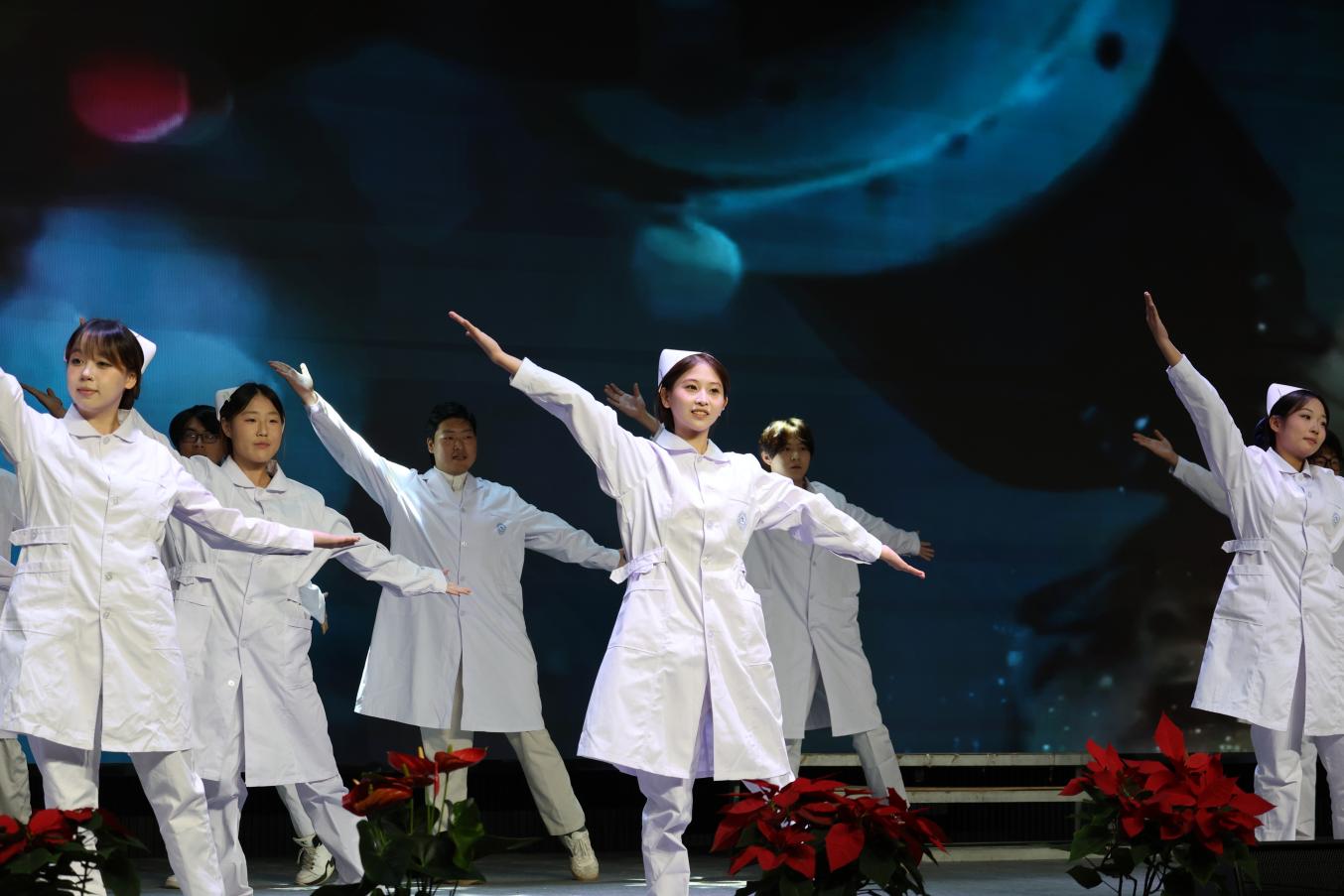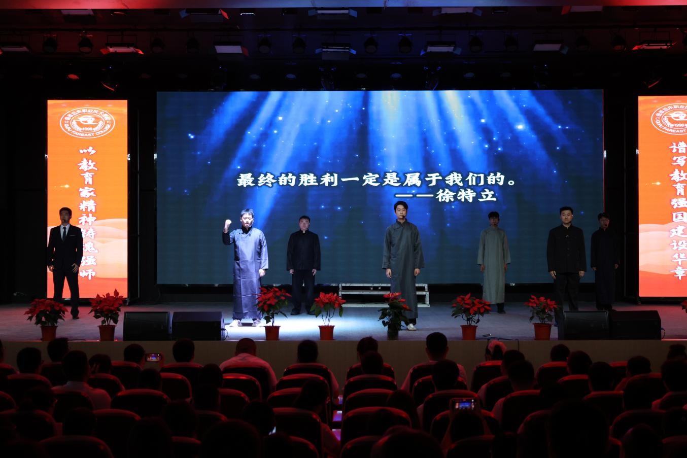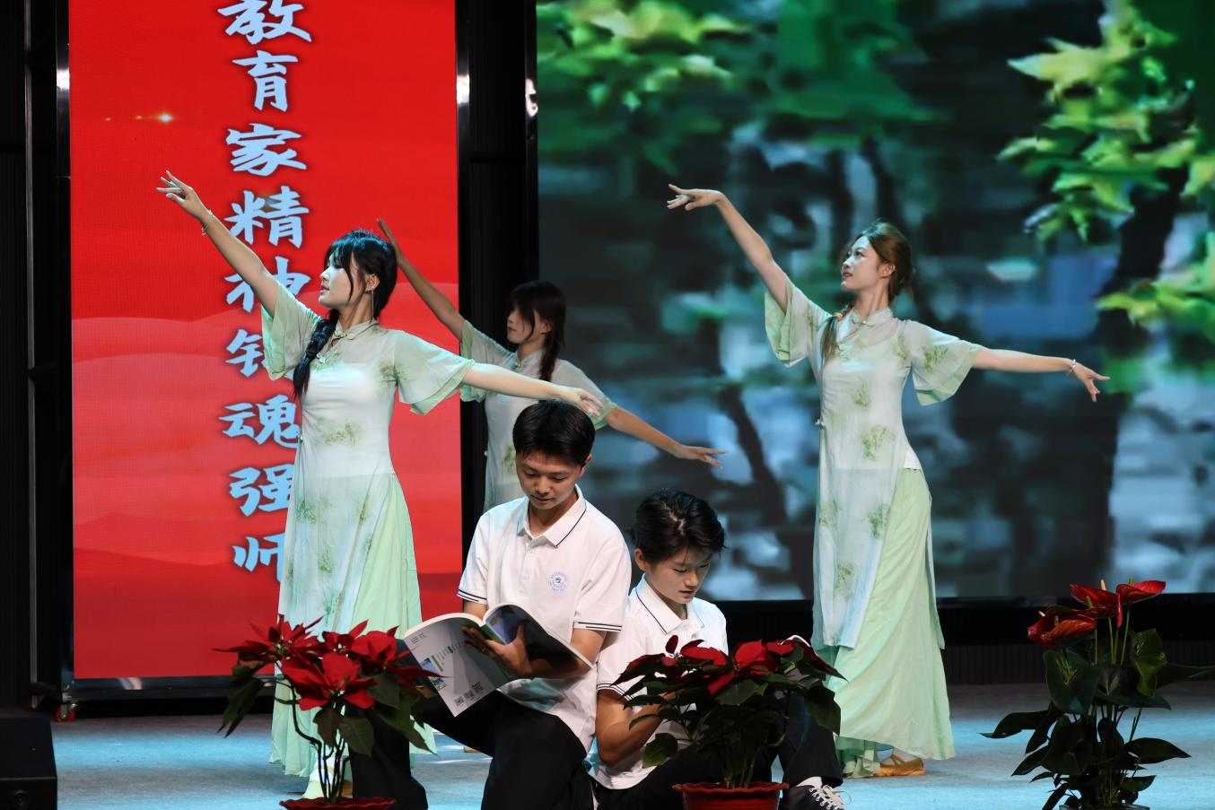 表彰仪式后,精彩的文艺汇演随即拉开帷幕。首个登场的歌舞朗诵《老师我想你》,以悠扬歌声、优美舞姿与真挚朗诵相融合,将学生对老师的深切敬意与感恩之情具象化。情景剧《师者芳华》通过细腻的情节与鲜活的演绎,再现教师日常工作的坚守与温暖;歌曲朗诵《老师谢谢您》则以质朴的语言与动人的旋律,直白传递出学生对老师的感激与回馈之心。一个个精彩节目紧扣感恩主题,用不同艺术形式诠释着师生间的深厚情谊,赢得现场阵阵掌声。报告厅始终洋溢着欢乐祥和的氛围,将师生情谊与校园温情推向高潮。