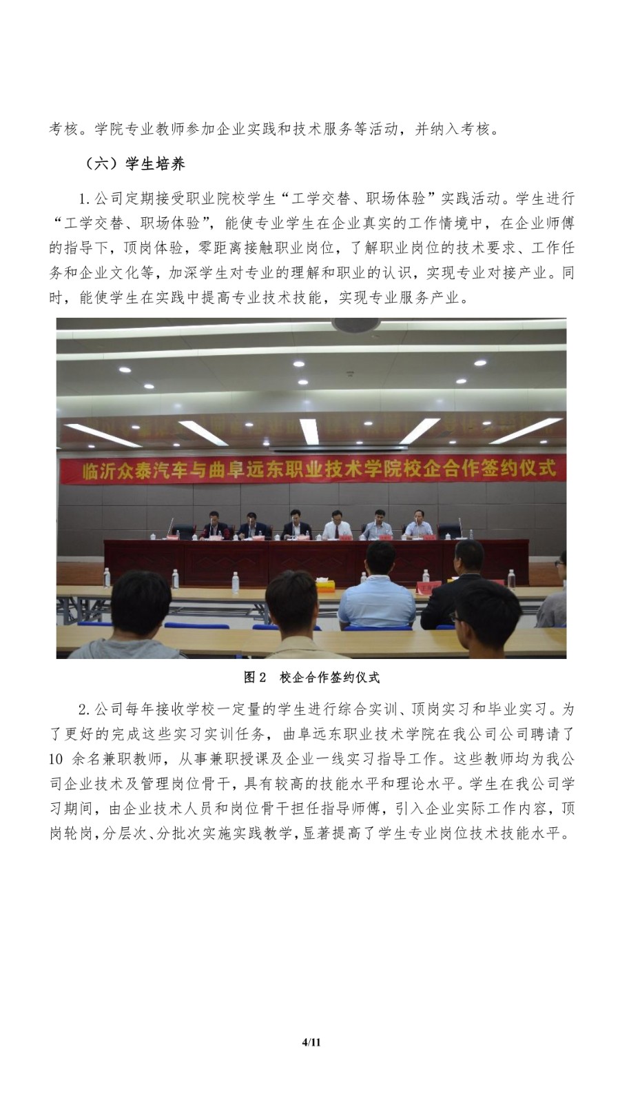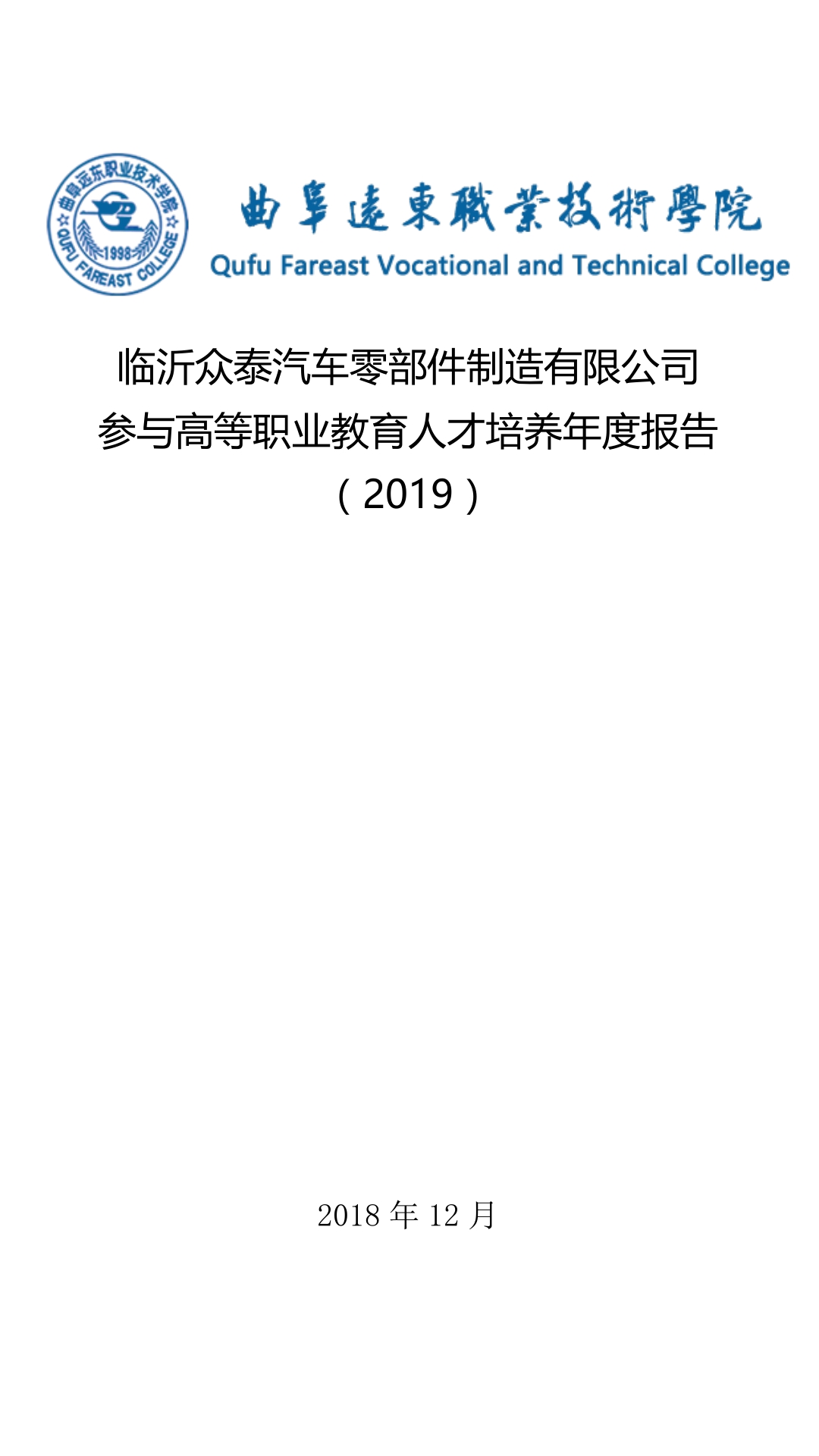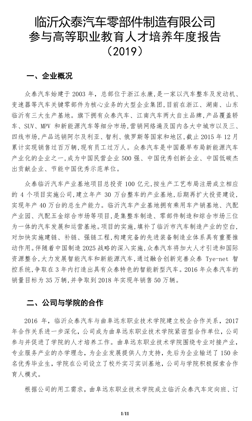 临沂众泰汽车零部件制造有限公司 参与高等职业教育人才培养年度报告 (2019)